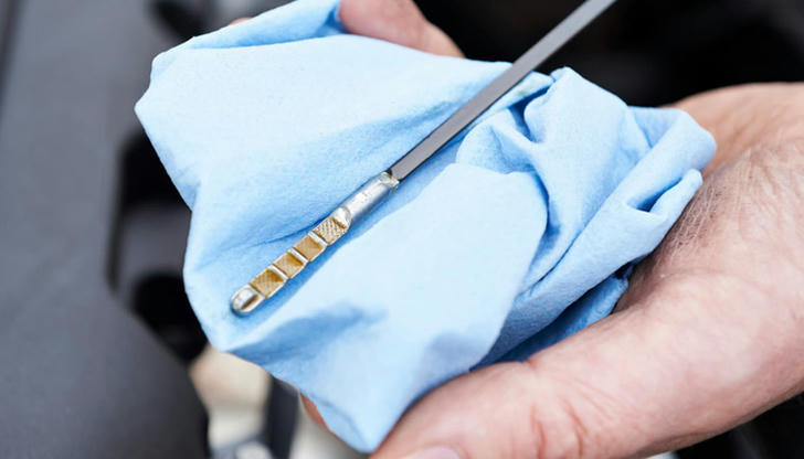 Correct Incorrect A dipstick is the most common tool used to check the oil level. It ensures the engine has the correct amount of oil for optimal performance.