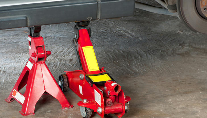 Which tool should be used to securely support a raised vehicle during maintenance?