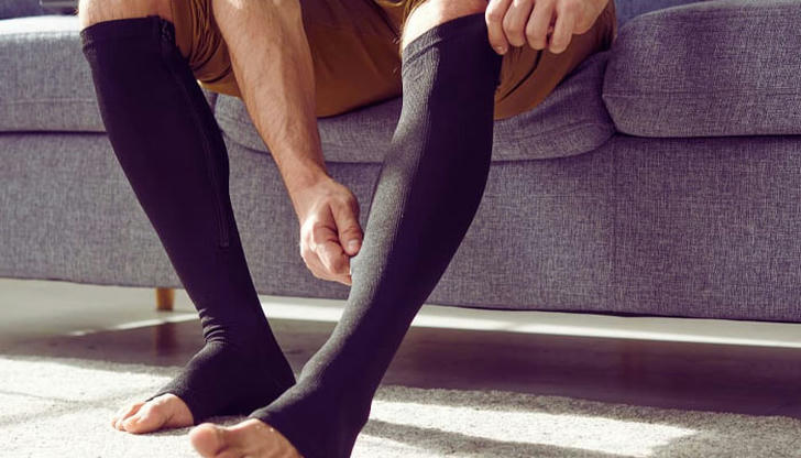 Your legs swell after sitting. What tight-fitting item shown helps improve circulation called?