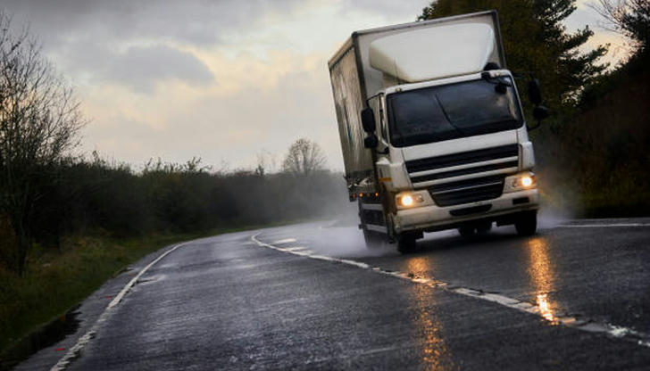 When a truck begins skidding on a wet road, what first control action should a CDL driver take?