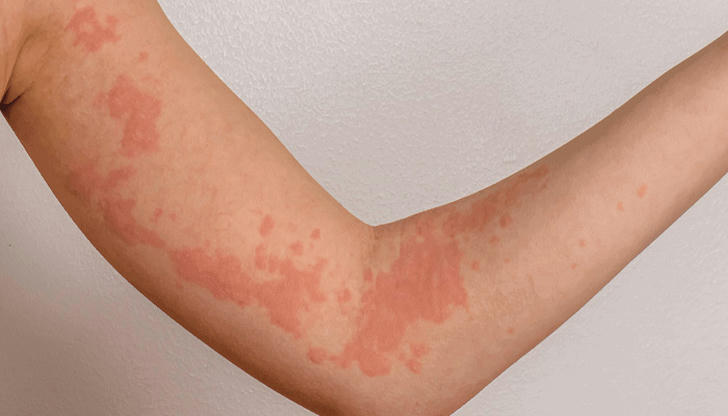 Correct Incorrect Urticaria refers to itchy red bumps, a common allergic reaction. After contact with allergens like pollen in gardening, it occurs, and treatment relieves discomfort and affects daily activities.