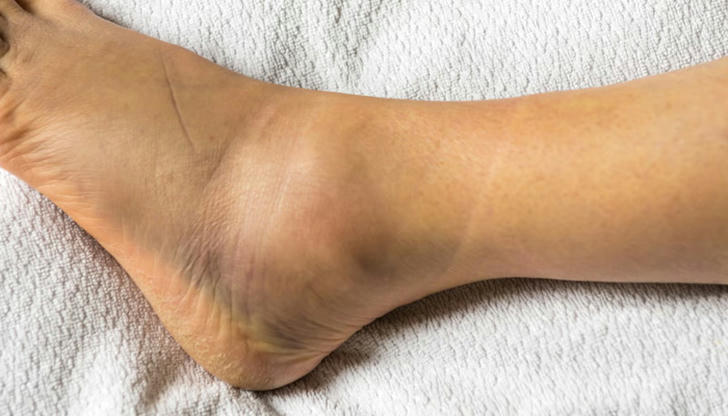 What is the medical term for fluid buildup in tissues after an ankle twist?