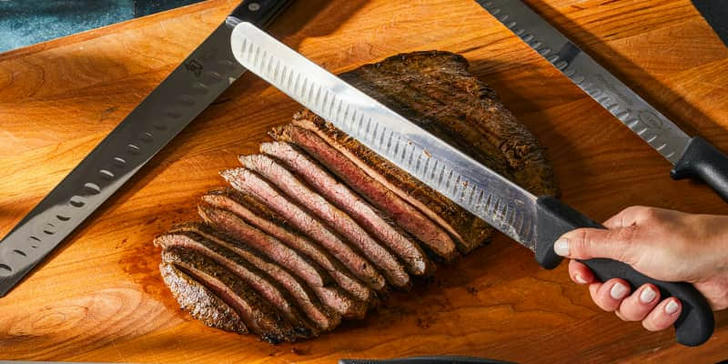 Kitchen Wizard Challenge: How Well Do You Know Your Tools & Appliances?Which knife is best for slicing cooked food?3%Next Correct Incorrect Slicing knives are thin and sharp - perfect for neat slices of ham or roast meat Which knife is best for slicing cooked food? Cleaver Slicing knife Bread knife Serrated knife 3%