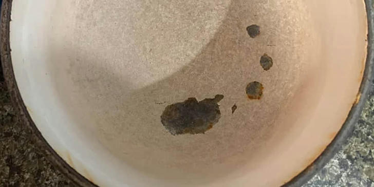Kitchen Wizard Challenge: How Well Do You Know Your Tools & Appliances?Chipped enamel pot risk?47%Next Correct Incorrect Rust flakes can get in your food - time for a new pot! Chipped enamel pot risk? Slower heating Rust Black bottom No problem 47%