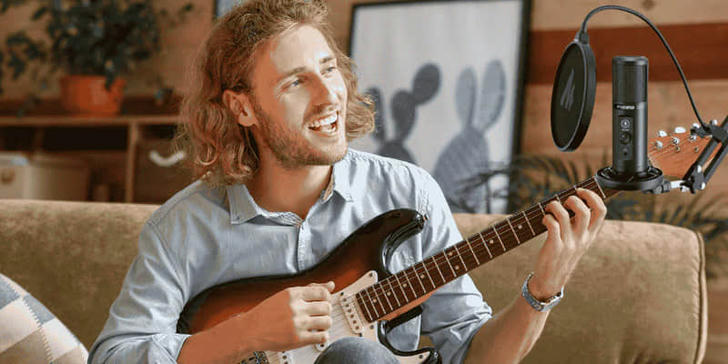 Correct Incorrect Musicians use a guitar to perform, a microphone to amplify their voice or sound, and an amplifier to boost volume and sound quality.